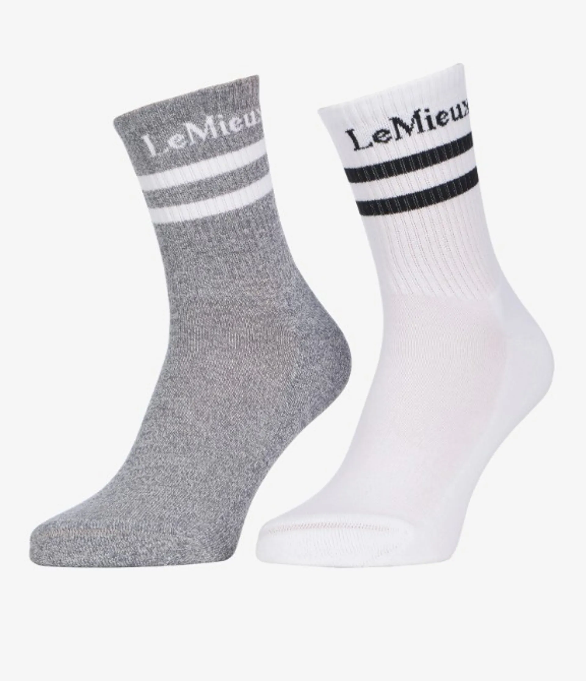 Sweat-wicking, cool and comfortable- Foot support and ankle elasticity- Two pairs per packIf you know, you know - LeMieux make the best socks around, whether for competition, training or simply chillaxing after chores. These crew socks fit the bill no matter the activity - sweat-wicking, cool and comfortable, with the perfect amount of foot support and ankle elasticity.
