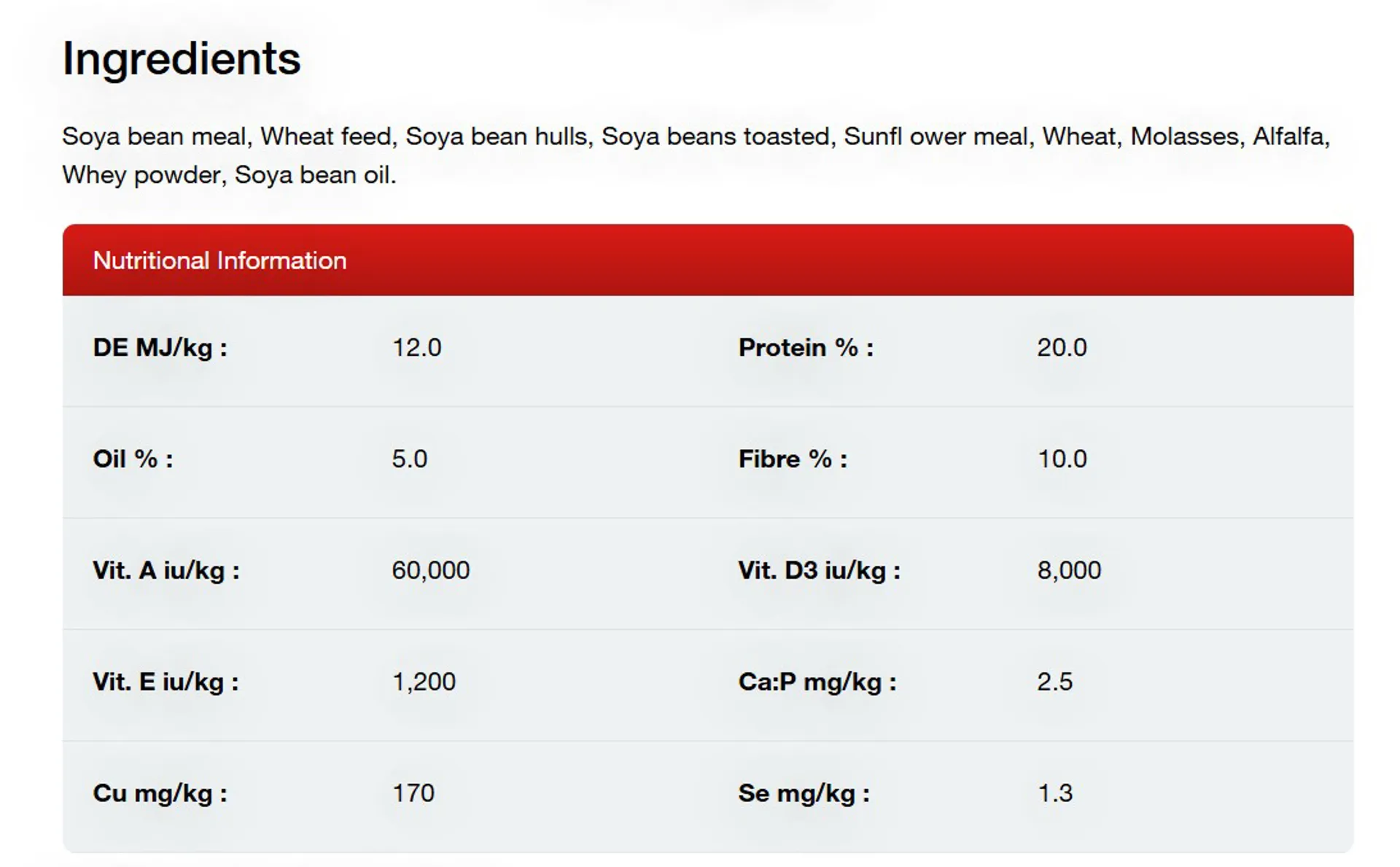 • Soya bean meal provides excellent quality protein for skeletal development and lactation.