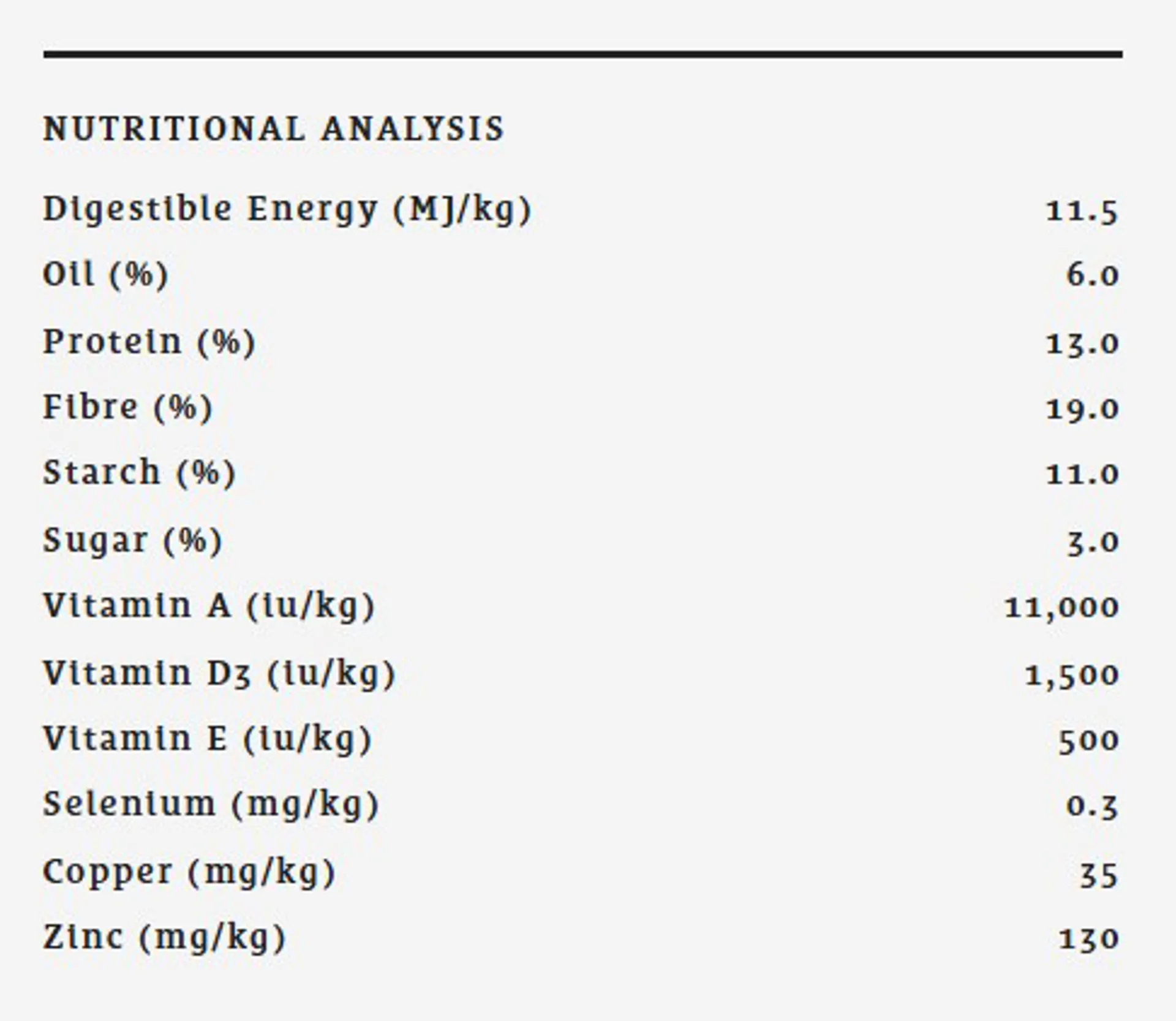 • Low in starch and sugar and molasses free to support gut health and reduce the risk of excitability.