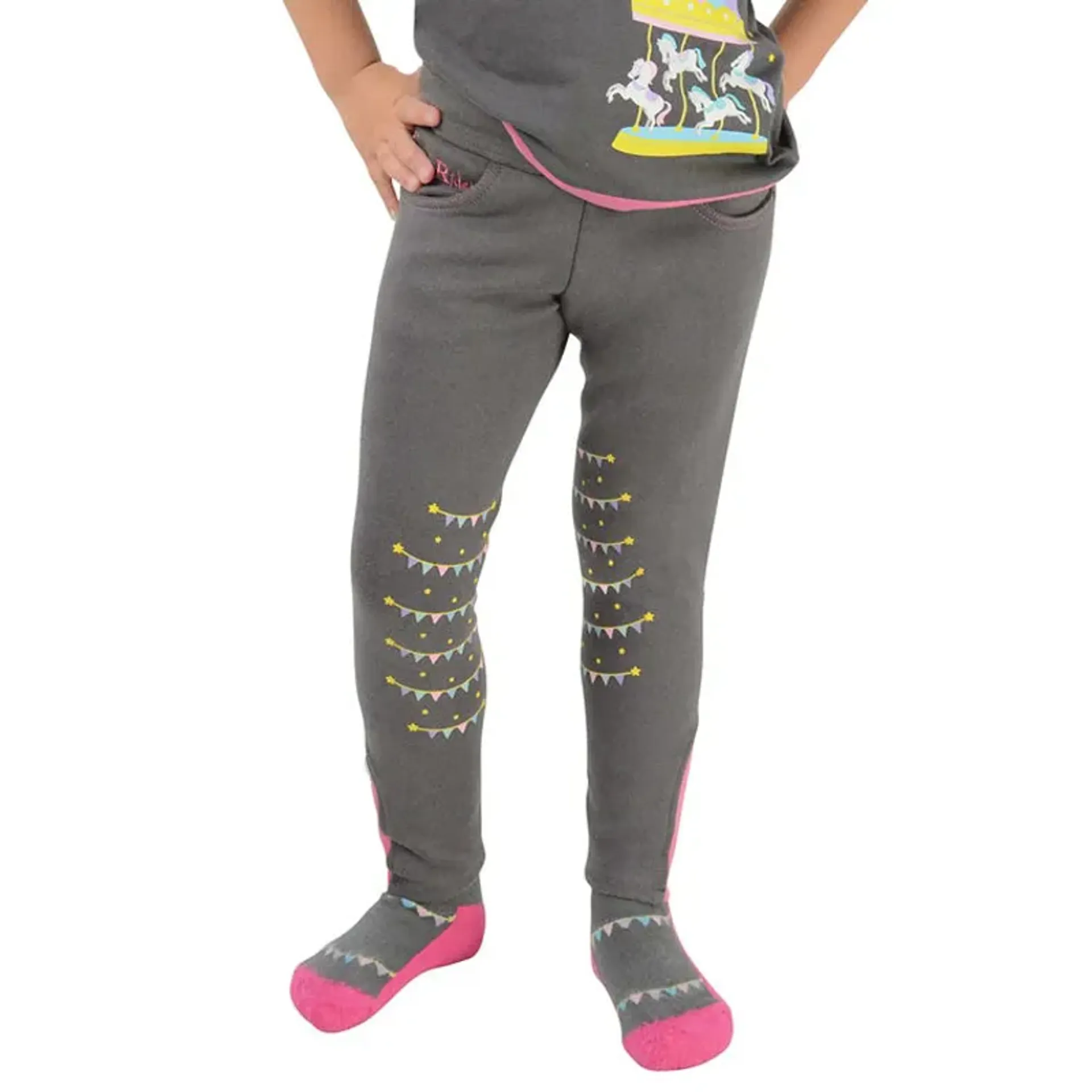 Pair these grey and pink jodhpurs with the Merry Go Round t-shirt and jacket to take your matching riding outfit to the next level.