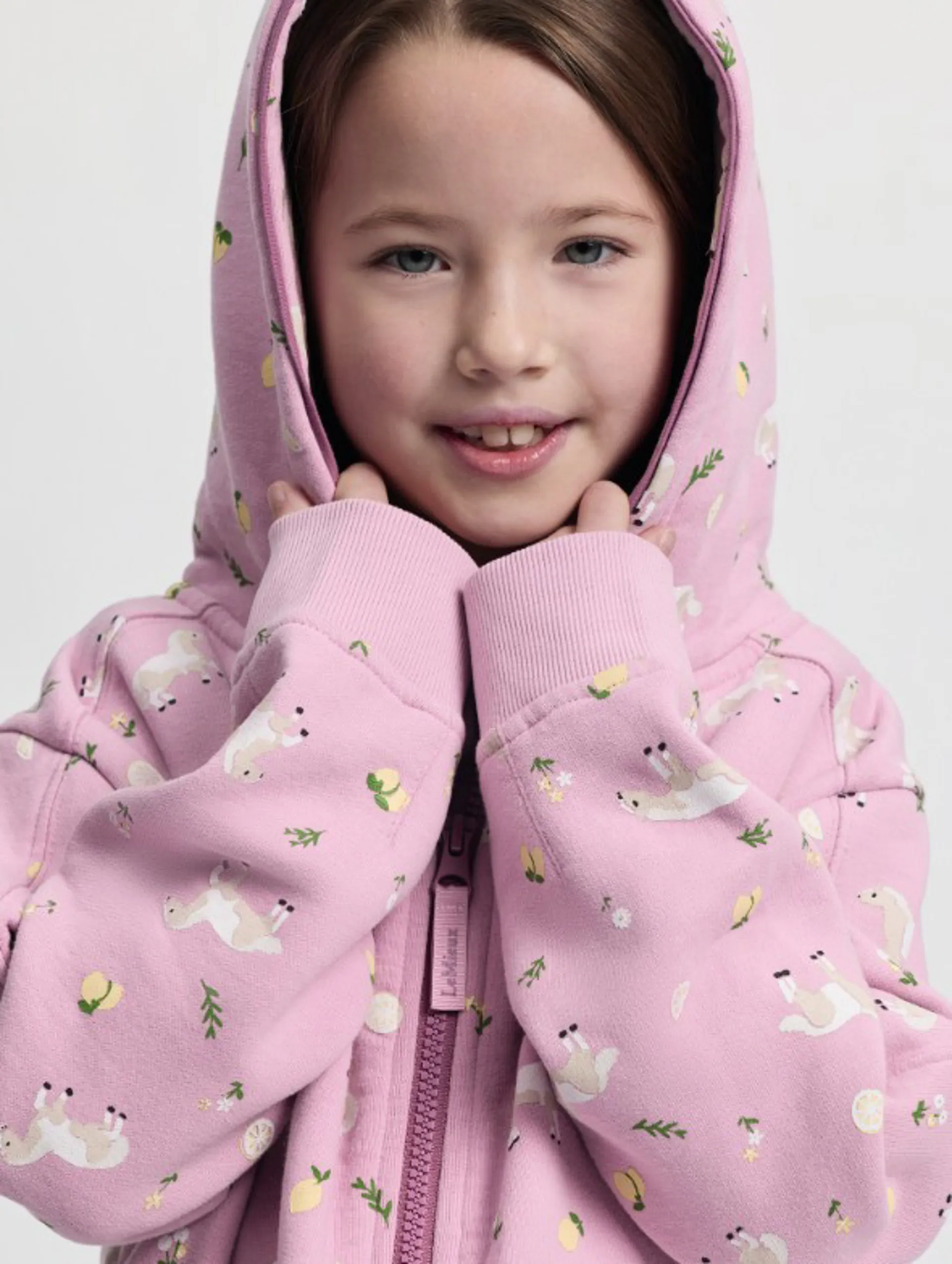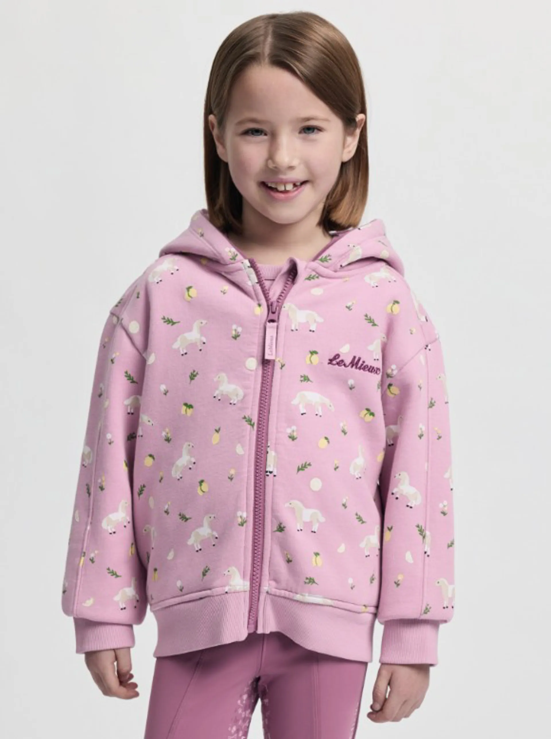Dropped shoulders, three piece hood and super soft fabric- Branded puller on full length zip - Piped details on hood- Soft printed and embroidered pony designWith dropped shoulders, a three-piece hood, and super-soft fabric, the Mini Charlie Zip Through Hoodie is a reliable layer of warmth for chilly mornings and fresh spring days.