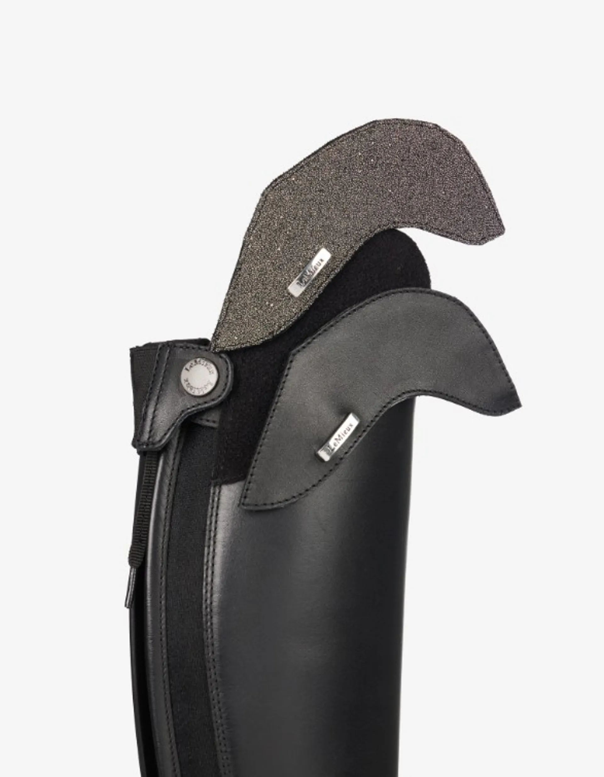 ‘Fit and flex’ full grain premium leather riding boots scaled for young riders- Customisable with two sets of interchangeable decorative panels: plain and sparkle pewter - Soft footbed for comfortable foot support- X-Grip rubber sole with linear tread for stirrup security- Breathable mesh lining with high-grade leather collar and heel tongue- Streamlined and seamless elasticated front lacing- Integrated spur rests on each side of heel- Durable YKK zip with concealed keeper, puller and neoprene cushioned cover for comfort behind the knee