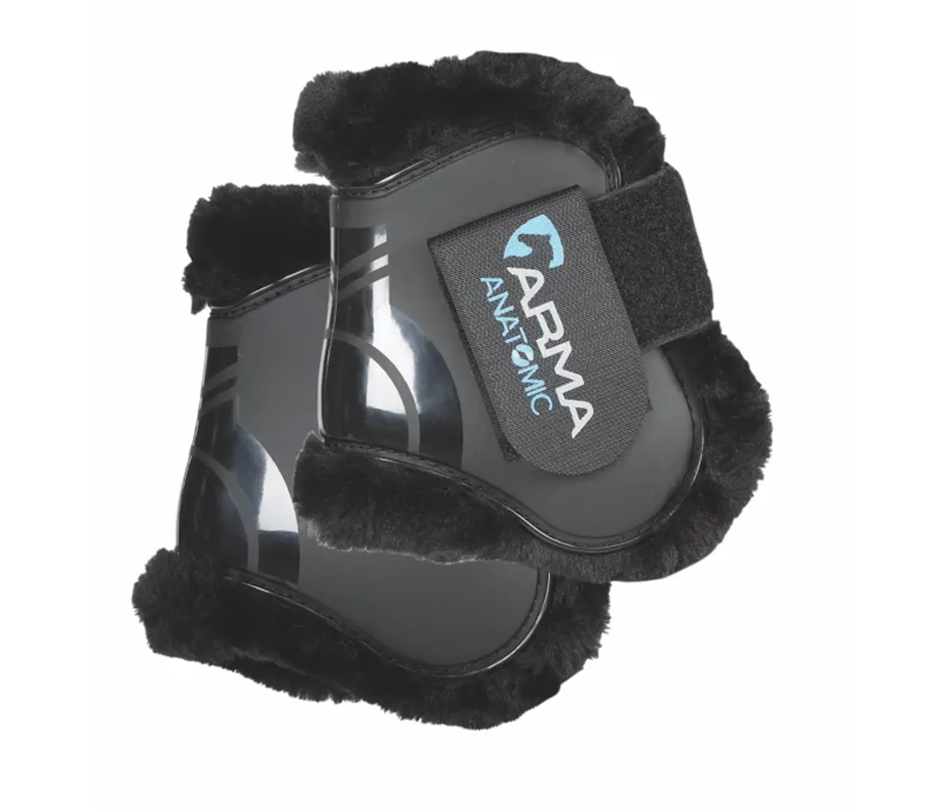 Arma supafleece fetlock boots offer protection to vulnerable areas whilst open straps allow the horse to feel his way.