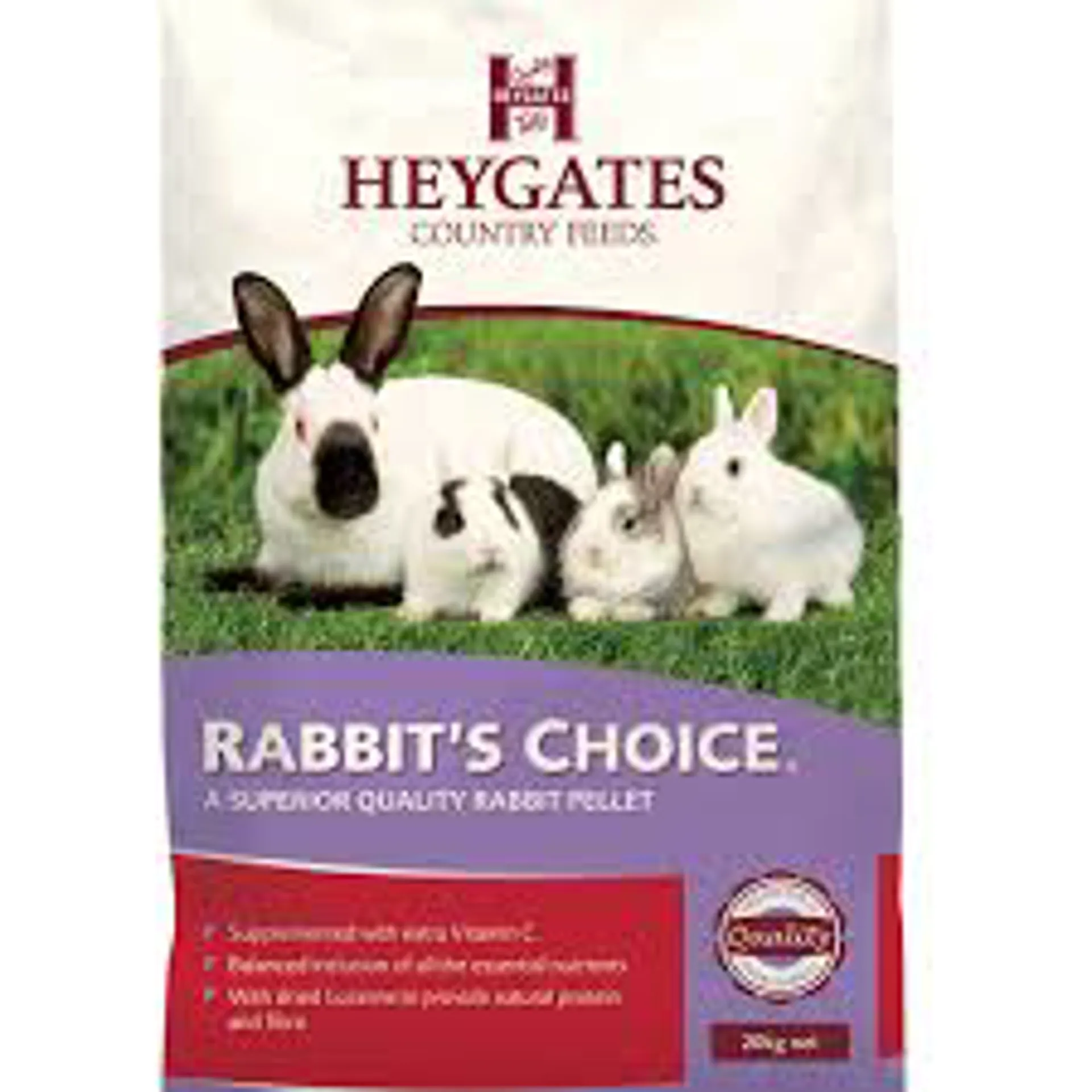 Heygates Rabbit's Choice®pellets are a superior quality 3mm pellet. The carefully selected raw materials include locally produced cereals fortified with proteins, minerals and vitamins to satisfy all your rabbit's nutritional requirements. A vitamin C supplement is added so that Rabbit's Choice®can be also be fed to guinea pigs and other small mammals.