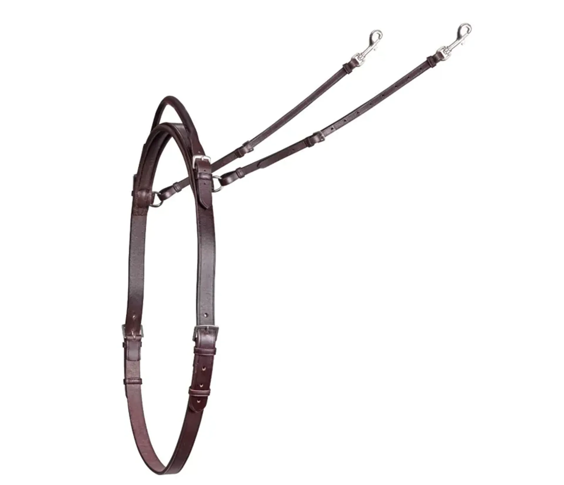Made from supple leather, padded at the wither and adjustable from either side, the handle can be attached or removed via buckle fittings.